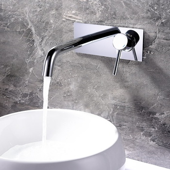 Grifo de lavabo de un solo orificio montado en la pared oculto de gran oferta en cobre cromado para agua caliente y fría